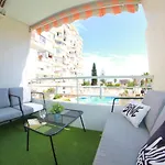 Lovely Studio New York Design, un apartamento de 30 m^2, ofrece vistas al jardín y una ubicación a 950 metros del acuario Sea Life Benalmádena. El apartamento tiene una terraza con piscina de inmersión, con vistas a la piscina.